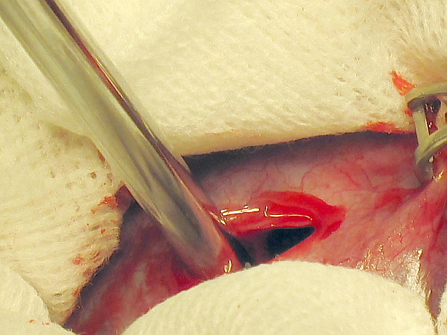 メスで切開して中身を吸引します。しかし中身は予想通りガチガチですべてを吸引することはできませんでした。