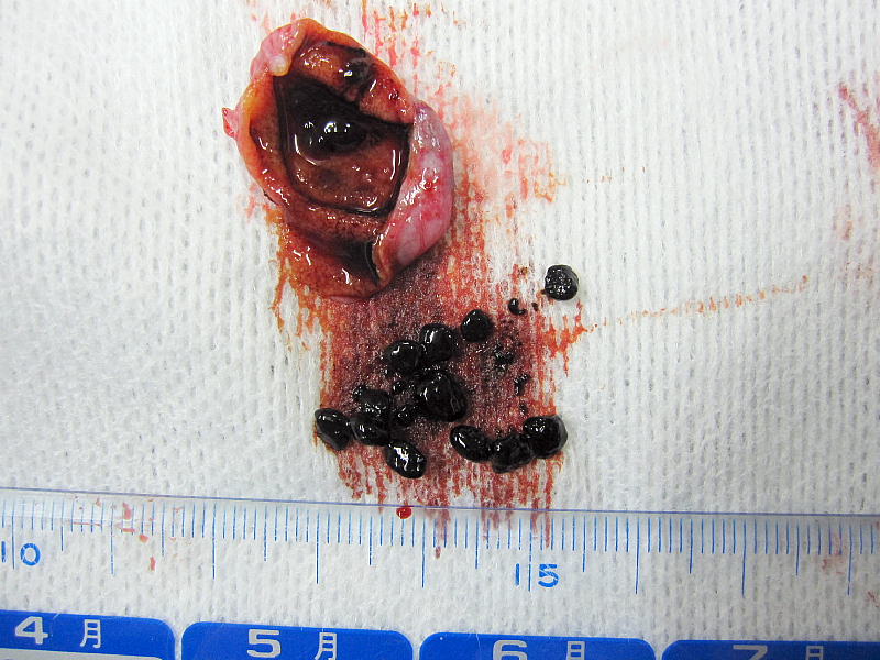 結局、胆石は12個ありました。また胆嚢内部では出血が見られました。