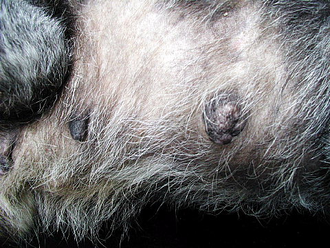 写真ではちょっとわかりにくいかもしれませんが、乳首が大きくなって乳腺が腫脹していました。